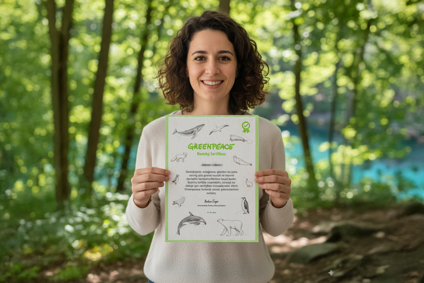 Greenpeace Türkiye’ye yaptığınız katkıyı simgeleyen özel bağışçı sertifikaları. Daha yaşanabilir bir dünya için verdiğiniz desteğin kalıcı bir hatırası.